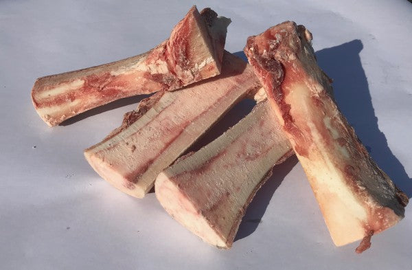 Our marrow bones come in bulk in an 8 kg box; however, you can take out only as many as you need at a time. Each marrow bone is cut in half lengthwise (boat style) into approximately 6-inch lengths. This makes for easy roasting of the bones with the juicy marrow ready to be scooped up. Also used to make bone broth or your favorite soup.Â
